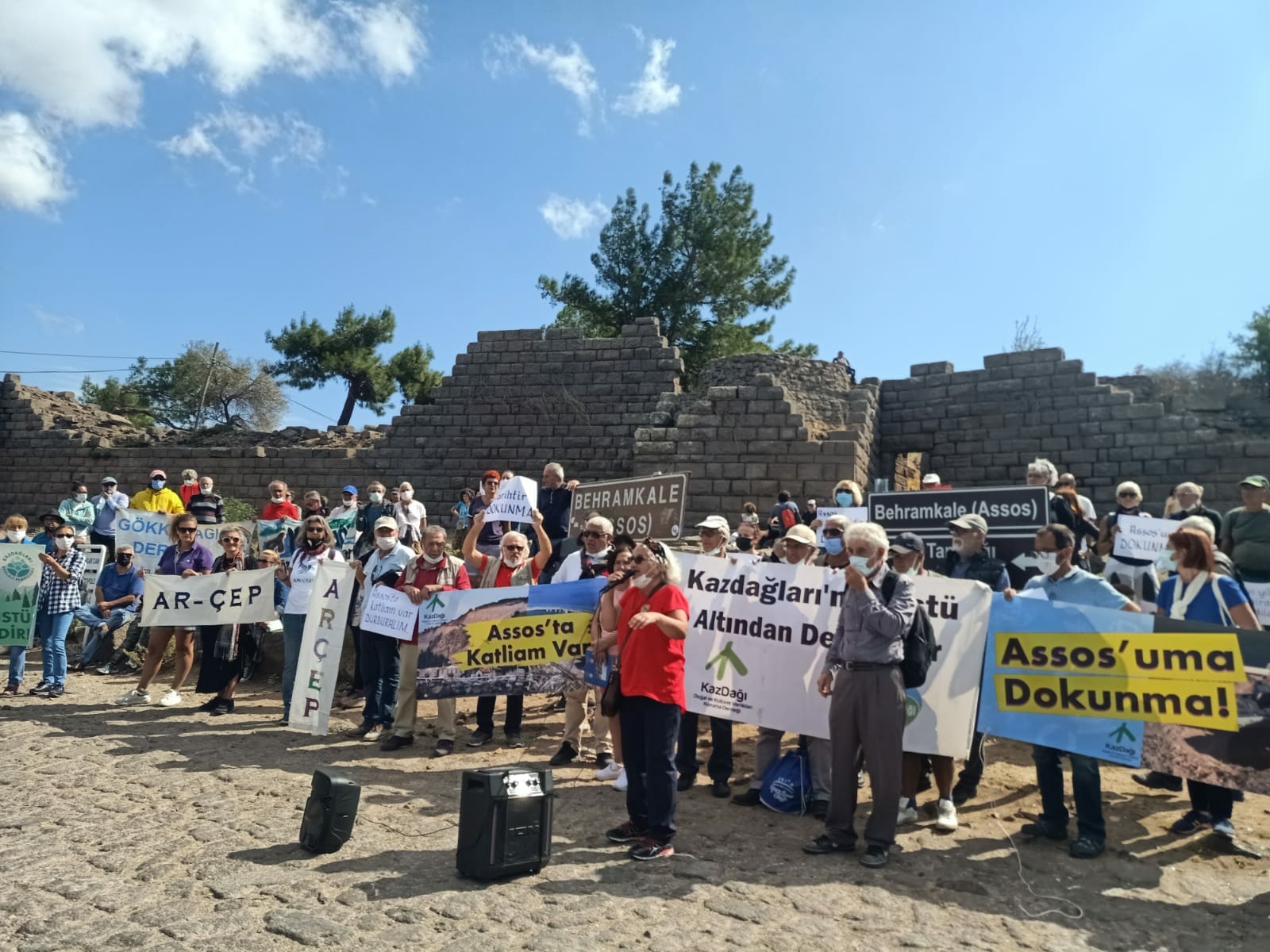 2 Ekim Cumartesi günü Kazdağı Doğal ve Kültürel Varlıkları Koruma Derneği, Assos Dostları, Kazdağları Ekoloji Platformu’nun çağrısı ile Assos Antik Kenti-Behramkale Köyü girişinde yapılan çalışmalarla ilgili olarak bir basın açıklaması gerçekleştirdiğini duyurdu.