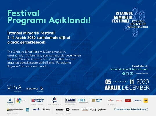 The Circle ve Binat İletişim & Danışmanlık’ın ortaklığında, VitrA’nın ana sponsorluğunda düzenlenen İstanbul Mimarlık Festivali, 5-11 Aralık 2020 tarihleri arasında gerçekleşecek etkinliklerle “Paradigma Kayması” temasını ele alacak.