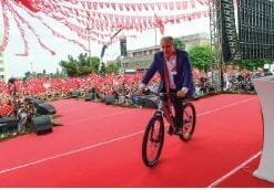 İşte bu öncü sarsıntıları belki de, hem iktidar hem de muhalefetin meydanlarda, seçim beyannamele­rinde, afiş ve reklamlarında okumak da mümkündü. Zaten siyasetçilerin, dip dalgaları hissedecek çok daha fazla araca (anketler, bölgelerden gelen raporlar vb. gibi) ve hislere sahip olması çok da şaşırtıcı değil. İktidar cephesinde bu erken uyarıyı, evlere gönderilen ağaç tohumları, ailecek yuvarlanılacak millet bah­çeleri vaatleri ile görürken, muha­lefetin en güçlü adayı haline gelen ve yeni söylemleriyle dikkat çeken Muharrem İnce’nin güneş enerji­si savunuları (Denizli’nin Bozkurt ilçesi belediyesinin güneş enerjisi santralının açılışını yapması dikkat çekiciydi), ülke yatırımlarının beto­na gömüldüğü yönündeki eleştiri­leri ve evet, bir miting sahnesinde bisiklet kullanması gibi sembolik işaretlerle gördüğümüzü söyleyebi­liriz. Yine Saadet Partisi Genel Baş­kanı ve Cumhurbaşkanı adayı Te­mel Karamollaoğlu’nun daha erken seçim kararı alınmadan, Şubat ayın­da, Kızılderili Reis’in ünlü söylevine atıfta bulunarak “Beyaz AK Partili adam beton ve asfaltın yenmeyen bir şey olduğunu anlayacak” sözleri de belki bu söylemsel değişime bir önsöz olarak okunabilir.