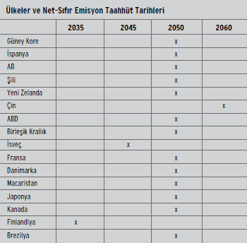 Türkiye için elimizde somut bir veri yok. Türkiye merkezli bazı öncü şirketler sıfır emisyon taahhütleri vermeye başladı ancak bunların toplamı çok sınırlı; ayrıca taahhütler ne derece sağlıklı bir şekilde saptandığı; bu hedeflerin gerçekleştirilmesi için ne kadar kesinlikli planlara sahip oldukları ve tüm bu süreçlerin sivil toplum ve yatırımcılar tarafından nasıl izleneceği hala belirsiz.